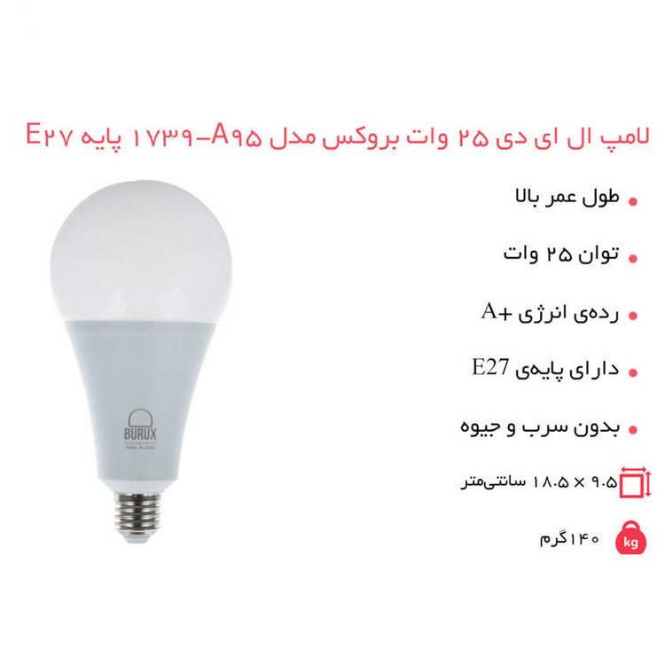 لامپ ال ای دی 25 وات بروکس مدل A-95 پایه E-27